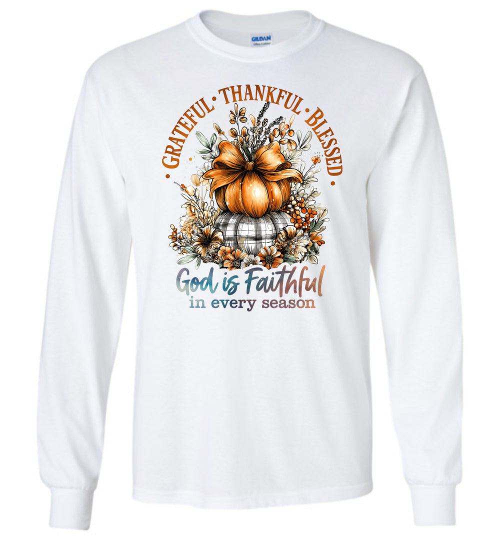 Christian Fall LS T-shirt Grateful Thankful Blessed