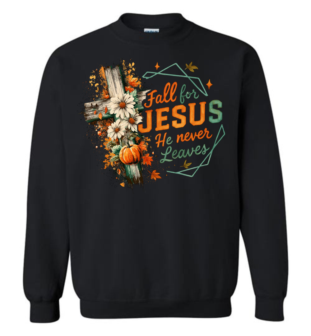 13KGHT73 Christian Fall Sweatshirt Fall For Jesus He Never Leaves – That's A Cool Tee