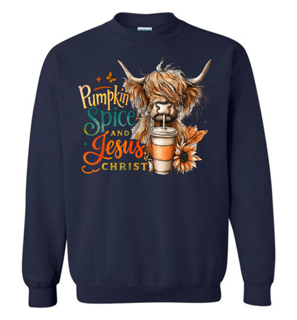 Christian Fall Sweatshirt, Pumpkin Spice And Jesus Christ Highland Cow Shirt