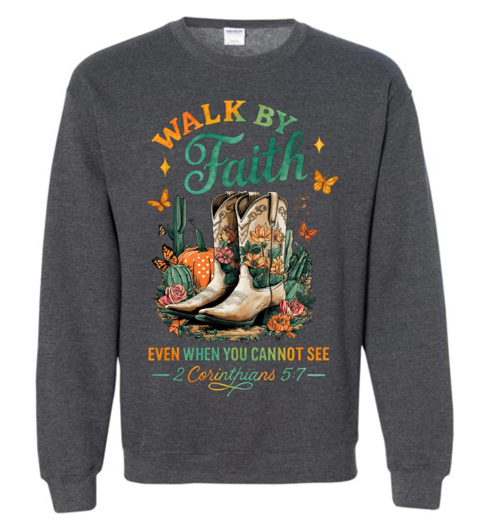 Christian Fall Sweatshirt Walk By Faith Cowgirl Boot Design