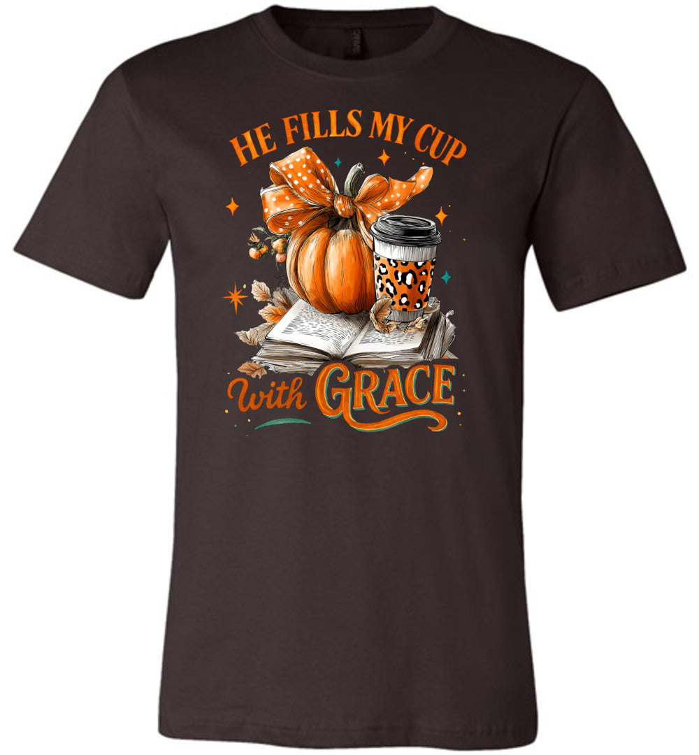 Celebrate your faith in style this season with the Christian Fall Tshirt "He Fill My Cup With Grace." Crafted as a premium unisex shirt, it offers a comfortable fit that suits all body types. Available in a variety of rich autumn colors, this shirt combines meaningful inspiration with seasonal warmth. Perfect for casual wear or as a thoughtful gift, it serves as a daily reminder of grace and gratitude. Made with quality materials, it balances durability and softness, ensuring lasting comfort throughout the fall months. Embrace faith and fashion seamlessly with this standout piece.