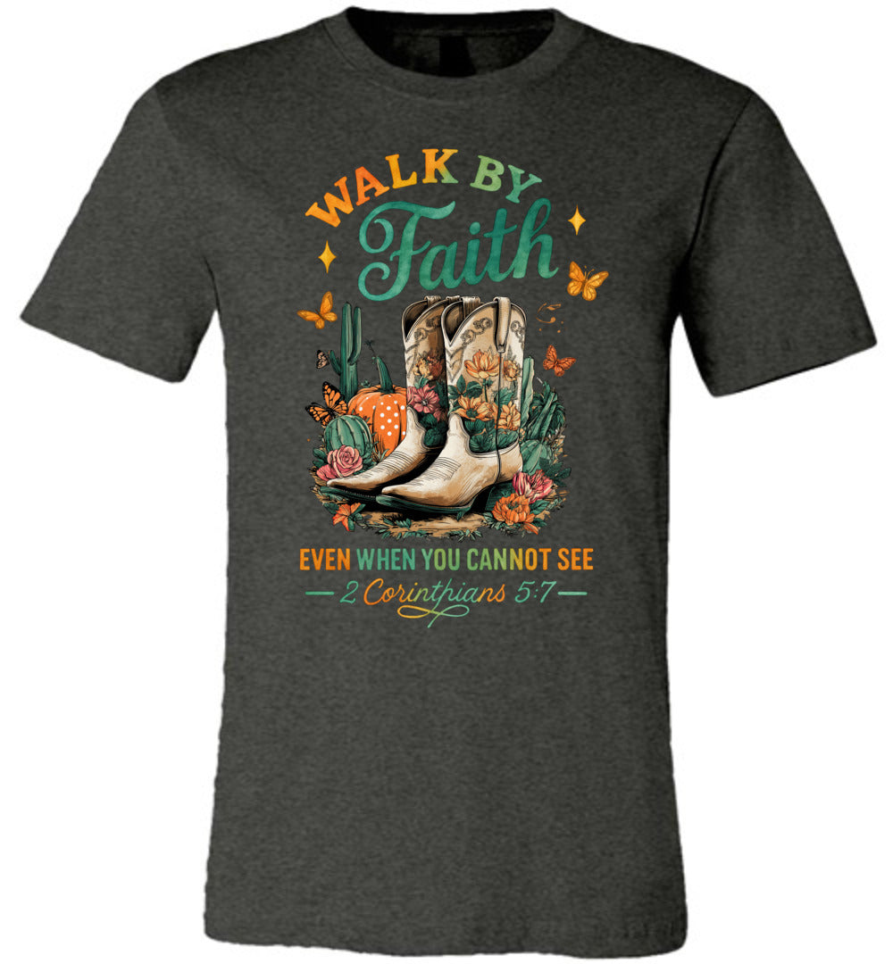 Christian Fall Tee Walk By Faith Cowgirl Boot Design