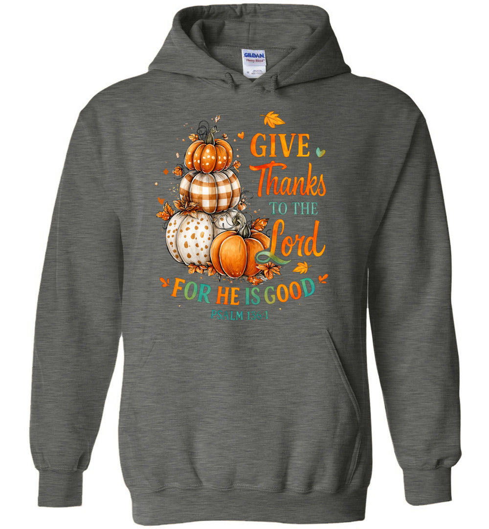 13KGHT73 Christian Fall Hoodie Give Thanks To The Lord Psalm 136.1 – That's A Cool Tee