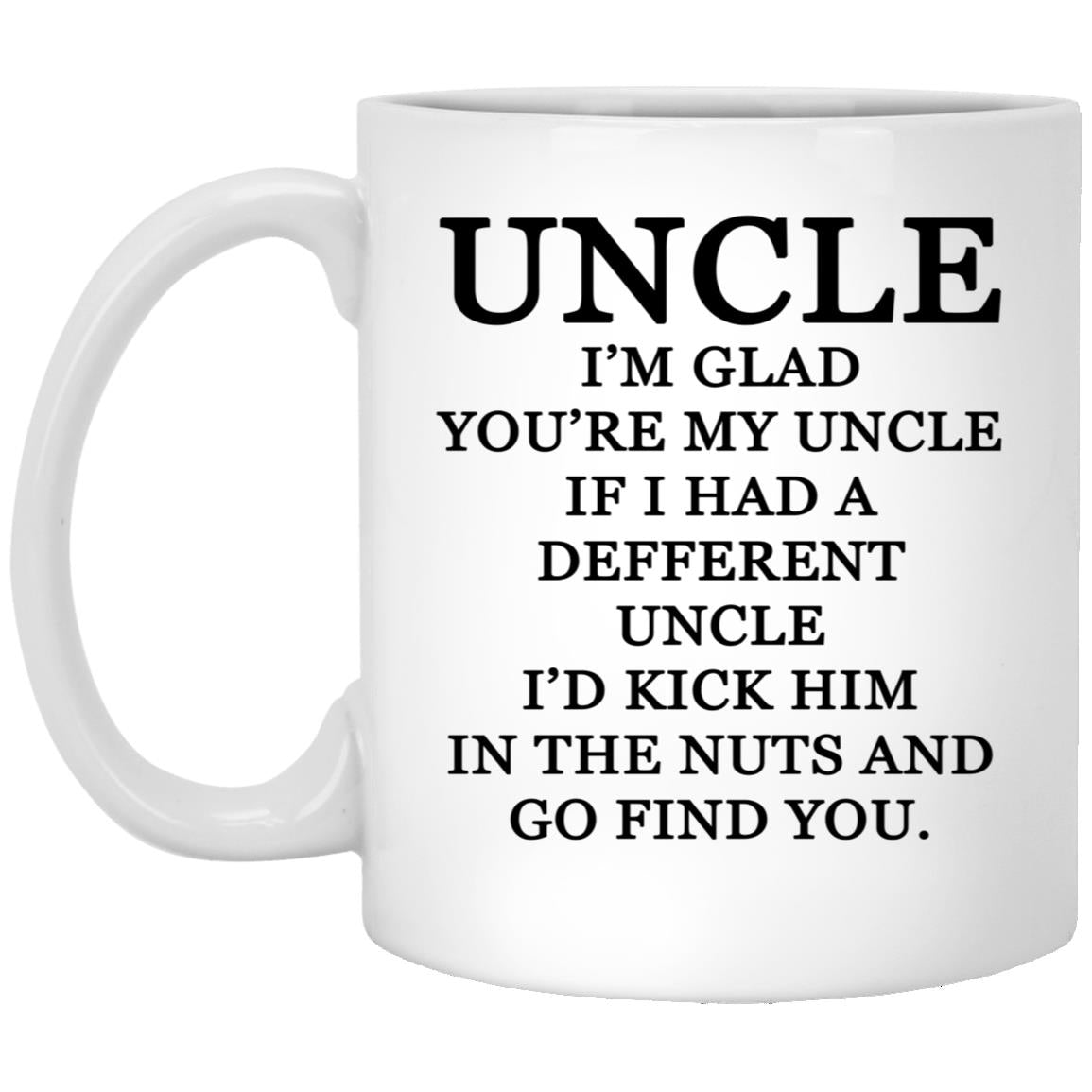 Uncle I'm Glad You're My Uncle, If I Had A Different Uncle, I'd Kick Him In The Nuts And Go Find You. This hilarious ceramic mug is the perfect gift for the uncle who's more like a best friend. Crafted from premium white gloss ceramic, this 11oz mug combines humor with everyday functionality. The bold, eye-catching design is protected by AAA ORCA Coating™ technology, ensuring vibrant colors that won't fade even with regular use. Whether he's sipping morning coffee or an afternoon beverage, this mug delivers laughs with every cup. Dishwasher and microwave safe for convenient cleaning and reheating. A witty way to show your favorite uncle just how much he means to you.