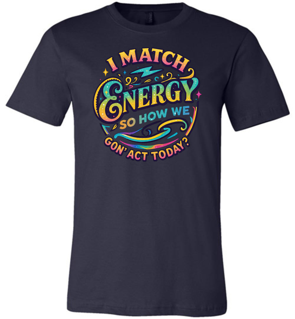 Funny Quote Shirt: I Match Energy So How We Gon' Act Today